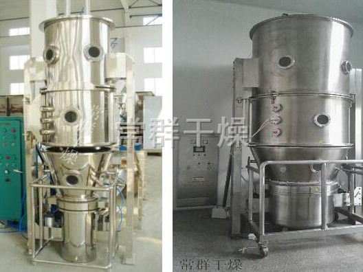 將一定的粉體物料放入流化床內作為晶種,液態物料經泵送至噴咀霧化器,與噴霧用高溫空氣瞬間接觸除去大部份水份,殘余水份則在底部流化床低溫干燥完成,并同時成粒。